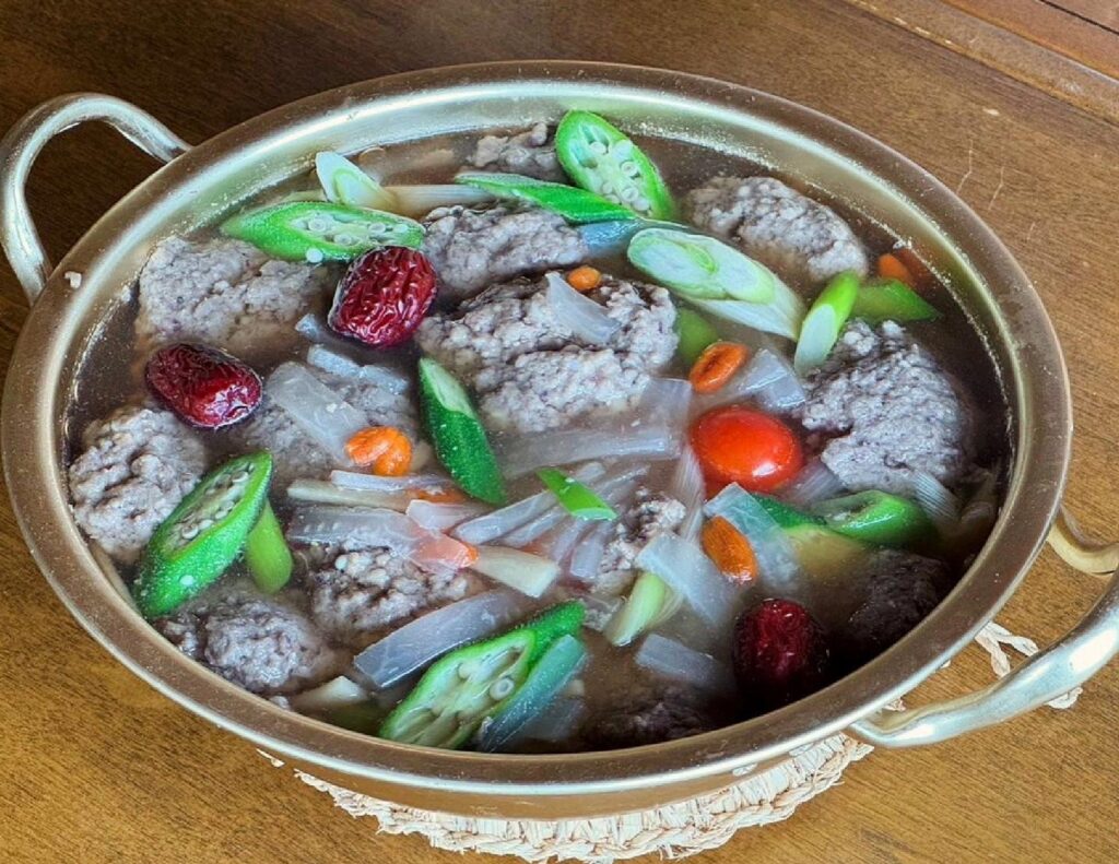 「佐渡産イカ飯団子の薬膳汁」