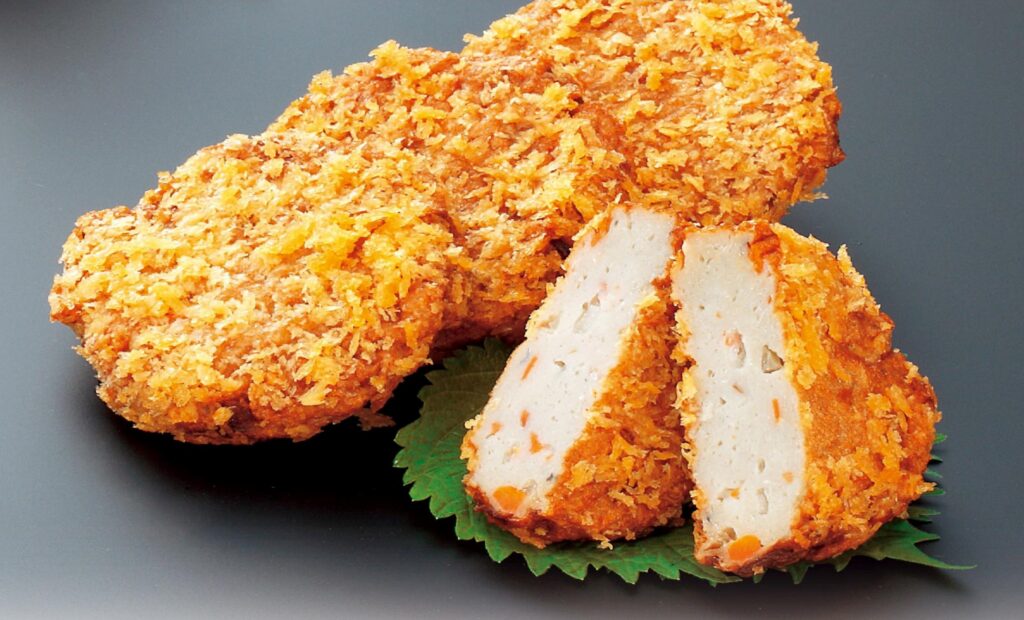 小魚を骨ごとすり潰したじゃこ天に玉ねぎ・人参を加え、パン粉をつけて揚げました。外はサクッと中はフワッとした食感をお楽しみください。