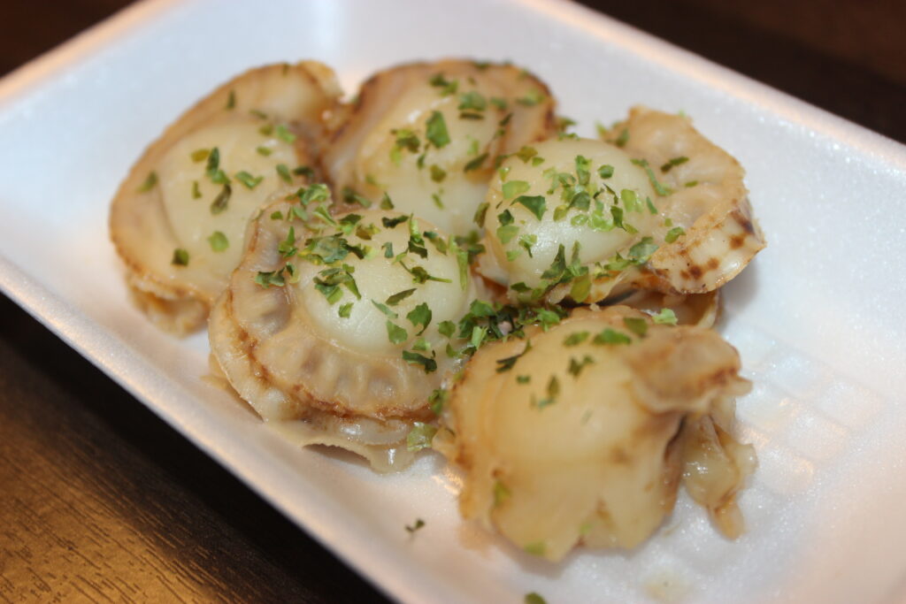 6つ目は「あおもり海辺のバル」です! バルには田酒や豊盃といった地酒や蛍火醸造さんの地ビールが飲める「地酒コーナー」や青森ならではのお酒に合うおつまみが堪能できる「地元のおつまみコーナー」があります。また、みなとオアシスあおもりは「ほたてスタミナ焼き」をご提供します。もちろんソフトドリンクの販売もございますので、皆さんぜひお越しください。